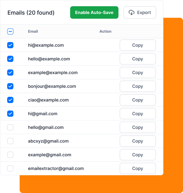 Boost your productivity with the Easy Email Extractor Chrome Extension! Our powerful tool helps you effortlessly find email addresses. Easily copy-paste the specific email addresses you need or export them all to a text or CSV file.